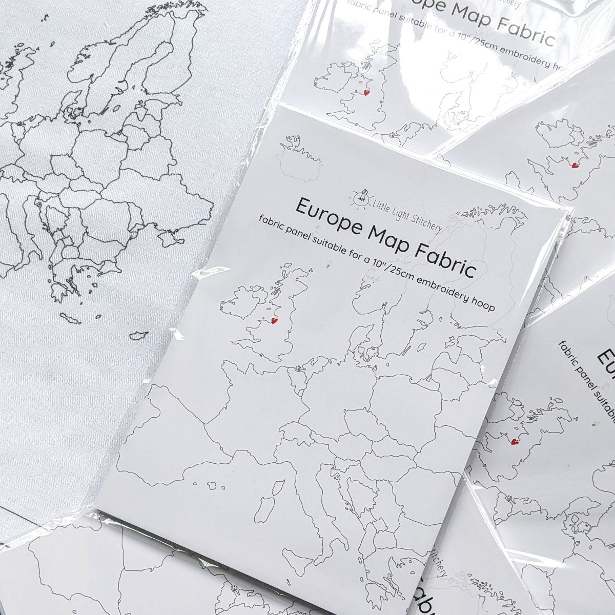 The Europe map design is approximately 18cm square and the fabric in it’s entirety is 35cm x 36cm.