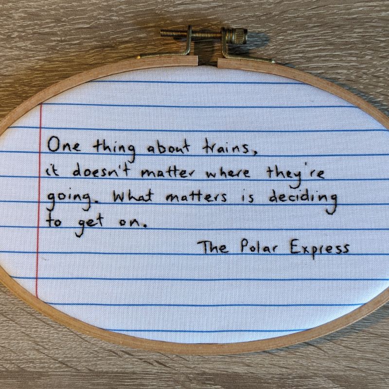Fabric pack, Supplies pack, Hoop – plan ahead (4"), Hoop – Anne of Green Gables, Hoop – Douglas Adams, Hoop – Always, Hoop – So tired (3"), Hoop – The Polar Express), Hoop – Treasure Planet