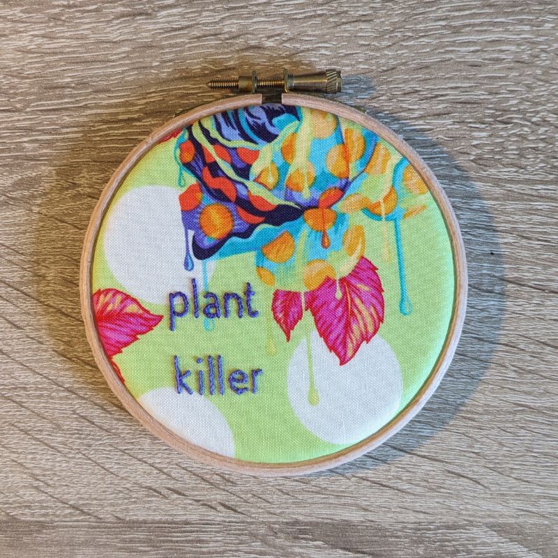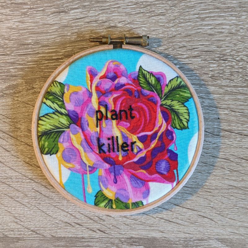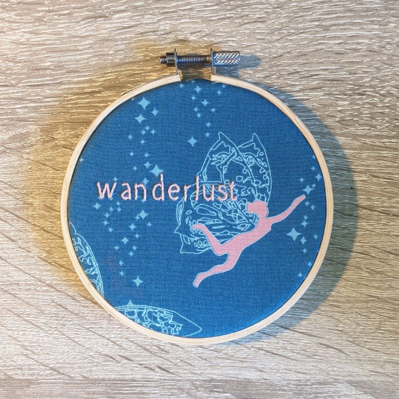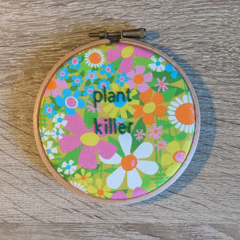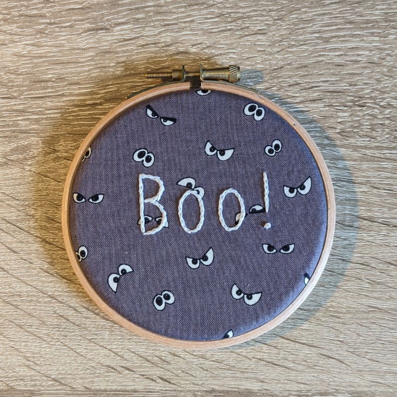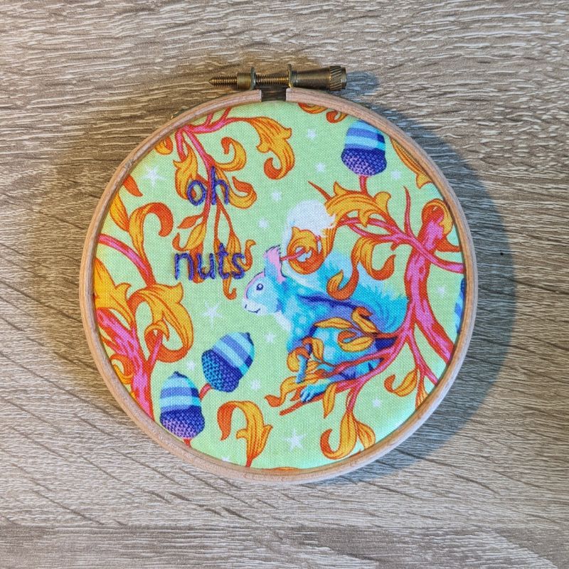 A wide variety of topics are covered here! All hand embroidered on 4″ hoops.